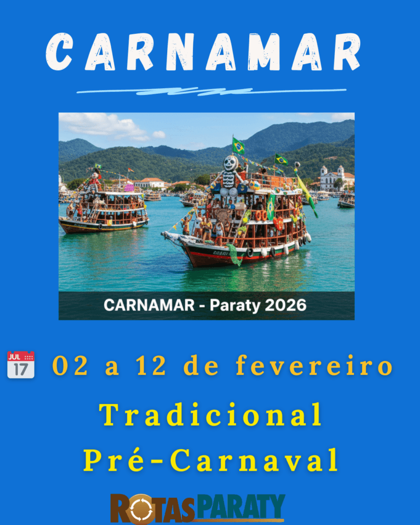 Antes da abertura oficial, a cidade já entra no clima com ensaios de blocos. O grande destaque é o Carnamar, onde dezenas de barcos e escunas decorados desfilam pela Baía de Paraty. É um evento único que premia as embarcações mais criativas e animadas.